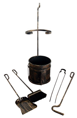 Σετ τζακιού παραδοσιακό Ήφαιστος με βαρελάκι πατίνα ασήμι, χρυσό & λευκό